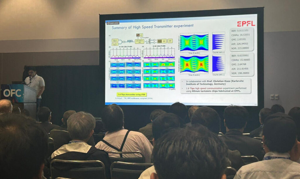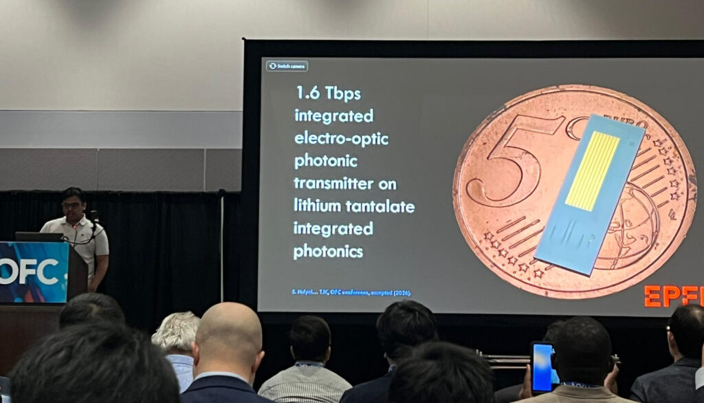 The presentation attracted strong interest at OFC, reflecting the growing momentum toward integrated, comb-compatible photonic architectures for future communication systems.